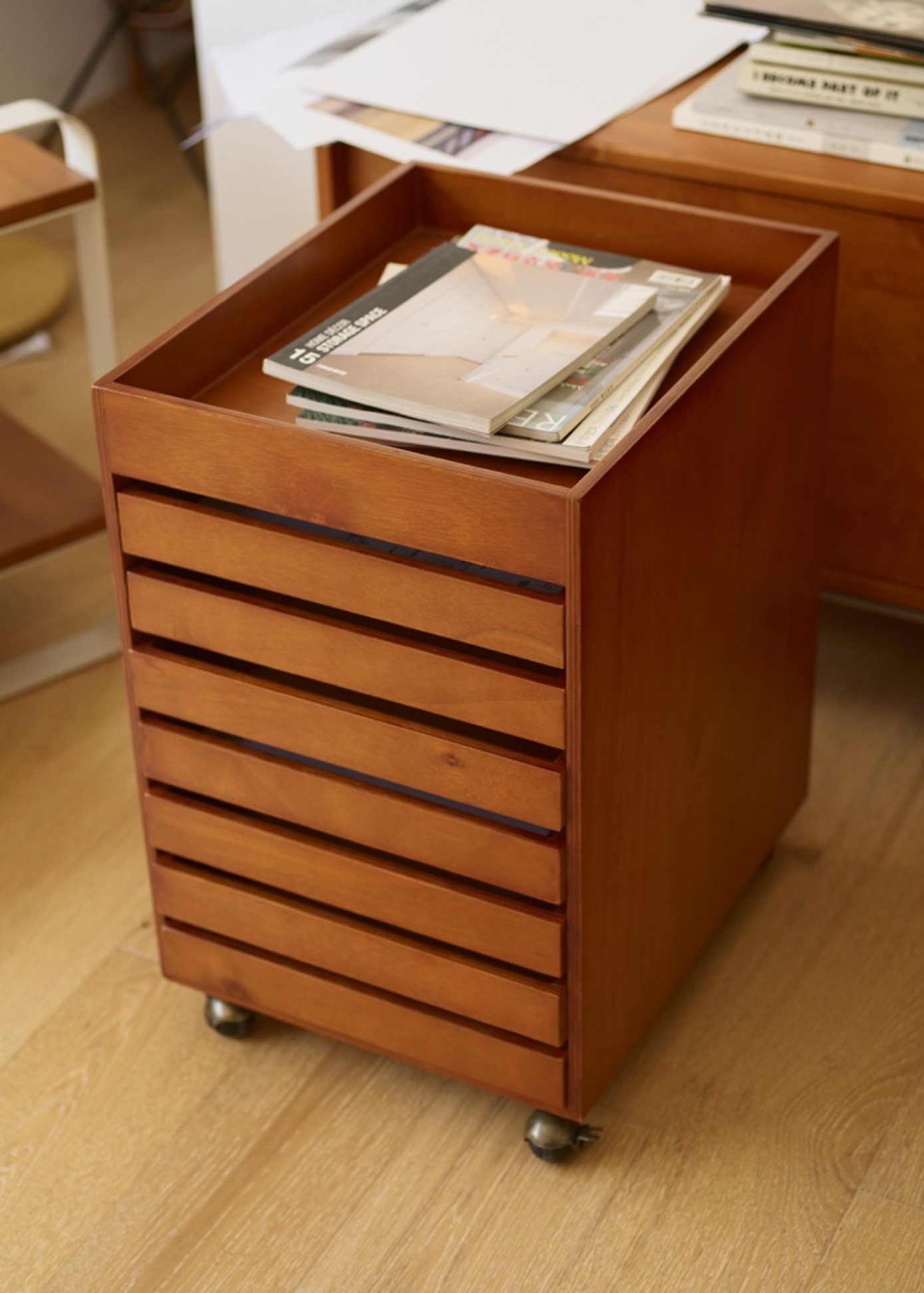 มีดีไซน์ที่เรียบง่ายในสไตล์ญี่ปุ่น ช่วยเพิ่มความสะดวกในการใช้งานด้วยล้อเลื่อนที่ทำให้สามารถเคลื่อนย้ายได้ง่าย เหมาะสำหรับการจัดเก็บสิ่งของต่างๆ เช่น เครื่องใช้ส่วนตัว, เครื่องเขียน หรือของจิปาถะในห้องทำงาน ห้องนอน หรือห้องนั่งเล่น
