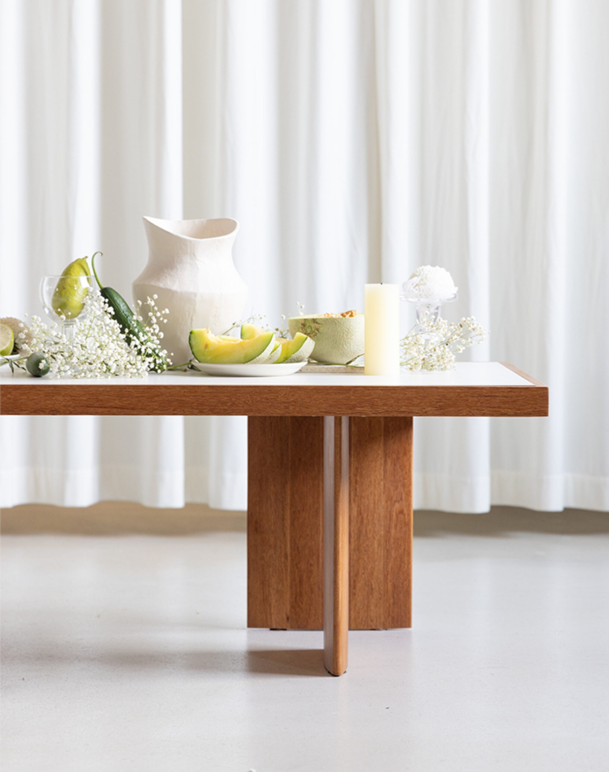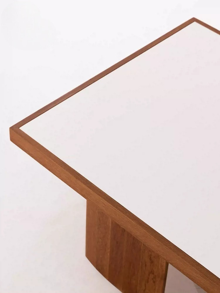 การผสมผสานของไม้และหินชนวนช่วยให้โต๊ะดูมีมิติและน่าสนใจ เพิ่มเสน่ห์ให้กับการตกแต่งภายในบ้าน